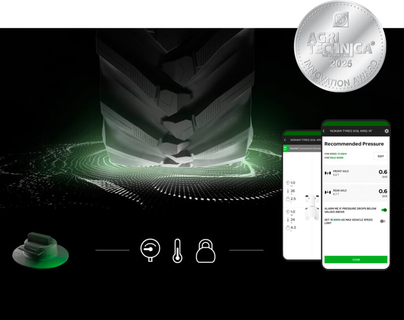 Suomalaisittain mielenkiintoista on Nokian Renkaiden uuden rengaspaineensäätöjärjestelmän saama hopeamitali. Oikean rengaspaineen valintahan on traktoreissa ratkaisevan tärkeää maaperän tiivistymisen vähentämiseksi ja pidon parantamiseksi pellolla.