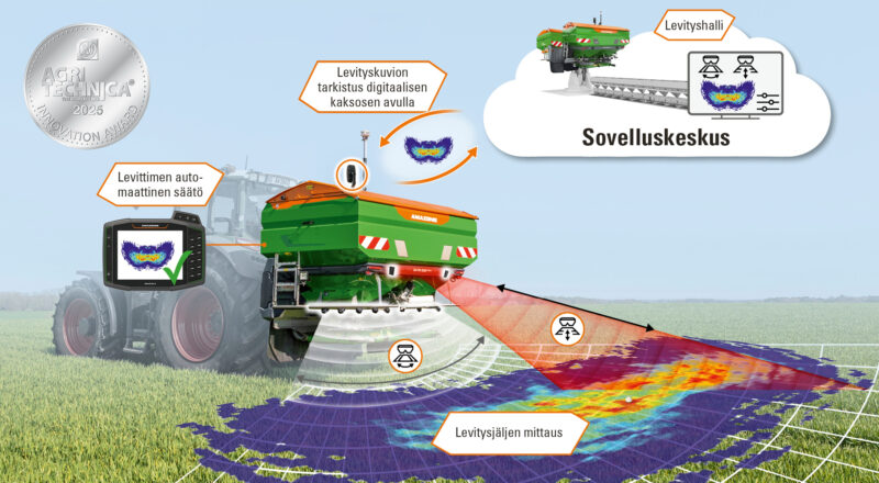 Amazone puolestaan hyödyntää palkitussa AutoSpread-levittimessään tutkaa ja tekoälyä. Näiden avulla levityskuvio säätyy pellolla siten, että tekoäly vertaa levityskuviota sisätiloissa tehtyyn digitaaliseen kaksoseen. Levityksen aikana voidaan optimoida levitysmäärää, kaarrelevitystä ja reunalevitystä tarkkuuden lisäämiseksi.