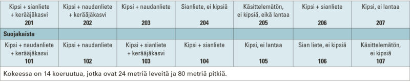 Koealue perustettiin 20.9.2024 hiuesavi (HeS) lohkolle Paimioon. Kevätvehnän sängelle levitettiin kipsiä 4 000 kg/ha ja heti sen jälkeen sian- tai naudan lietelanta. Lannan levityksen jälkeen kylvettiin kevätvilja pintalevittimellä osalle koeruutuja kerääjäkasviksi ja lopuksi koeruudut muokattiin kultivaattorilla 8–10 cm:n syvyyteen. Kultivaattori ja sen pyöriväteräinen jälkiäes multasivat yhdellä ajokerralla kaikki koekaistoille levitetyt materiaalit. Kaikki edellä mainitut työvaiheet tehtiin saman päivän aikana.